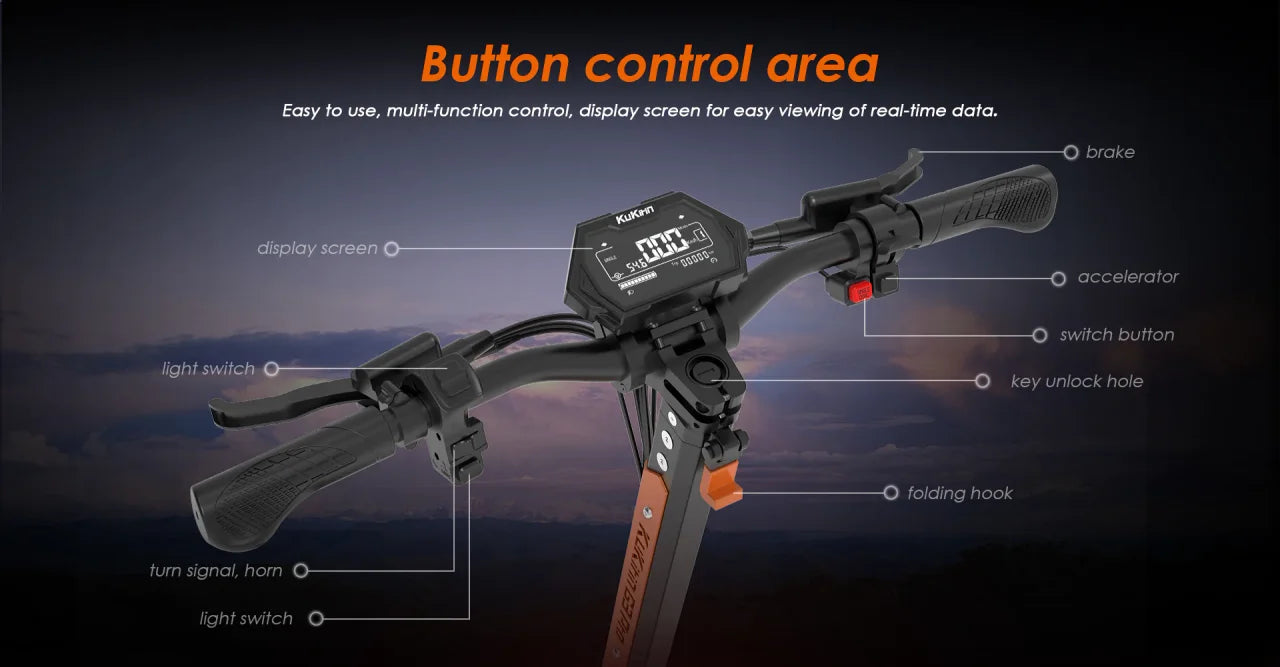 Meet the KUKIRIN G3 Pro — built for riders who want powerful acceleration, long range, and off-road capability. With dual 1200W hub motors and a 52V 23.4Ah battery, the G3 Pro reaches up to 65 km/h and offers up to 80 km of range. Thanks to its rugged construction, full suspension, and all-terrain tires, it's ready for both paved roads and rough trails.